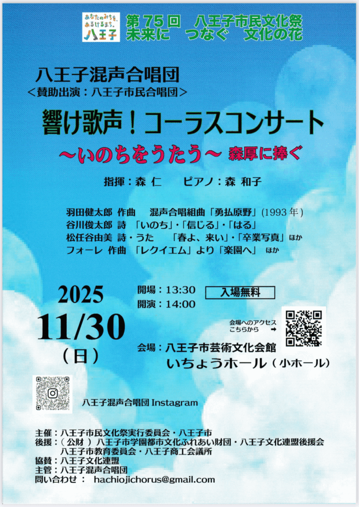 八王子混声合唱団「響け歌声コーラスコンサート」